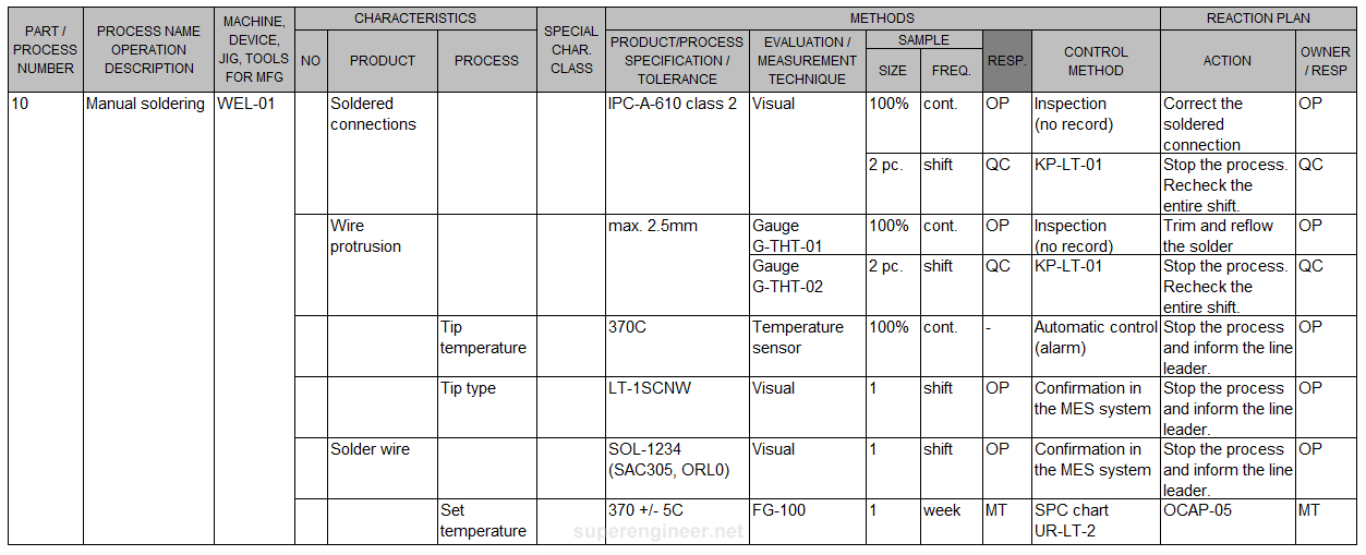 Common elements of a control plan include: